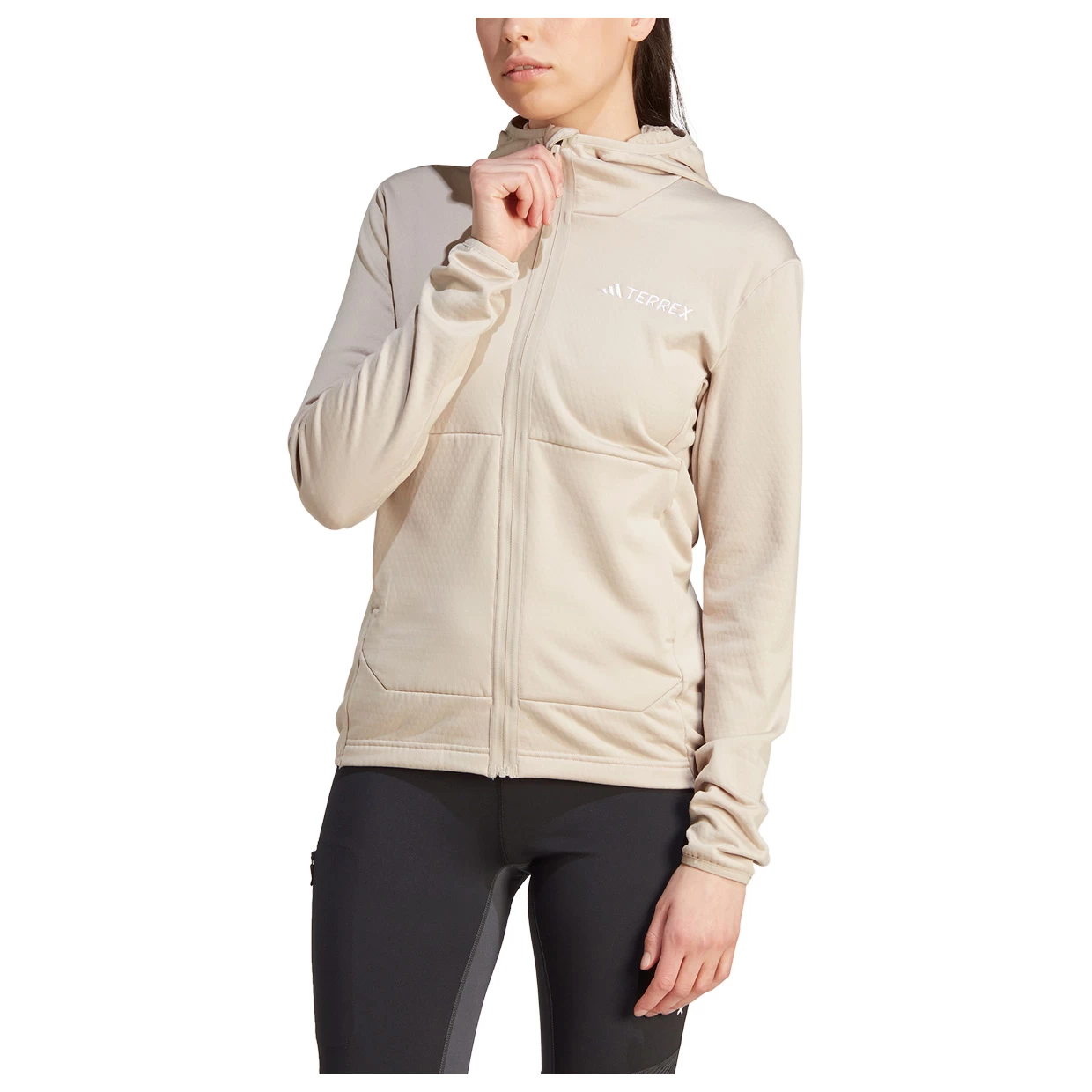 Geh raus in die Natur, ohne dabei Kompromisse in Sachen Komfort einzugehen. Diese adidas TERREX Kapuzenjacke hält dich warm und ist dabei angenehm leicht, damit du volle Bewegungsfreiheit hast. Dafür sorgt das TERREX Flooce Material mit Wabenstruktur, das bei jedem Schritt deine Körpertemperatur reguliert. Dank der Reißverschlusstaschen hast du außerdem wichtige Kleinigkeiten wie Smartphone, Energieriegel und Co immer griffbereit.